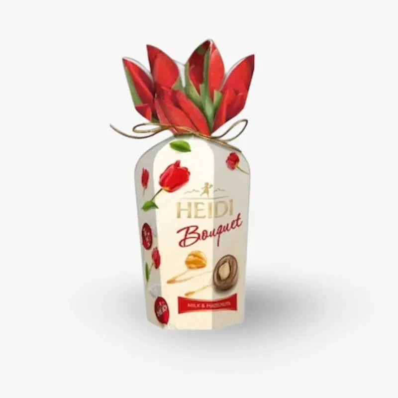 Completeaza surpriza cu un detaliu dulce! Bomboanele Heidi Bouquet sunt alegerea perfecta alaturi de buchetul de flori preferat si vor indulci orice moment special. Sortimentul poate varia in functie de stoc.