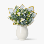 Buchet de 15 frezii albe, poate fi oferit drept o dovada de pretuire si de recunostinta fata de persoana care le primeste. Comanda acest buchet de frezii albe cu livrare gratuita in peste 100 de orase din tara. Primesti o felicitare cadou pentru fiecare comanda. Ingrijit corespunzator, buchetul poate rezista in vaza pana la 2 saptamani. Coditele florilor trebuie taiate zilnic, in unghi de 45 de grade. Apa trebuie schimbata zilnic.